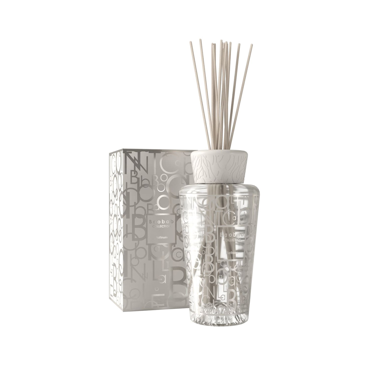 Der geschmackvolle, 15 cm hohe Diffuser Platinum aus der Kollektion My First Baobab des belgischen Unternehmens Baobab macht den Namen zum Programm. Der Glas-Flakon zeigt sich in einem platinfarbenen Design und wird von einem weißen Bakelitverschluss mit eingraviertem Wurzelmuster gekrönt. Der Diffuser kann 0,25 Liter fassen und hüllt jeden Raum in Duftnoten aus Muskatnuss, Bernstein und Vetiver.