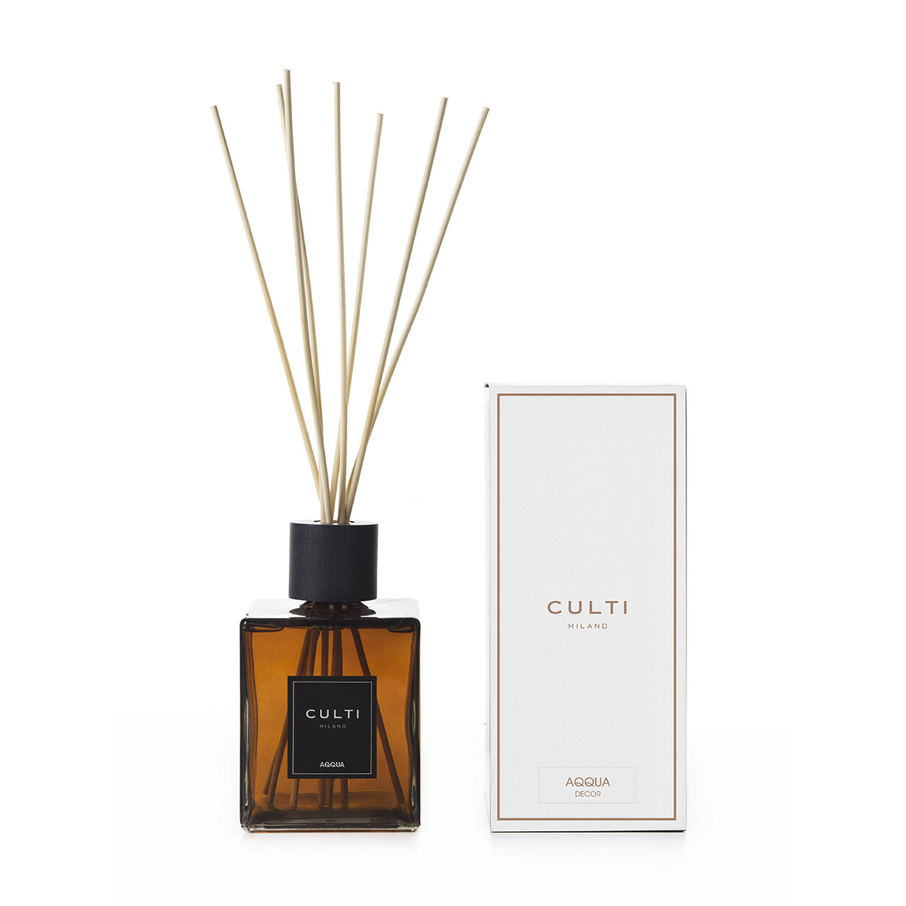 Der Diffuser Aqqua von Culti war eine der ersten Duftkompositionen des italienischen Unternehmens. Der blumige Zitrusduft vermittelt mit den Duftnoten Koriander, Bergamotte, Salbei und Sandelholz eine sanft-weiche Mischung, die an ruhige Gebirgsquellen erinnert und jeden Raum zum erfrischend duftenden Wohlfühlort macht. Der mokkabraune Diffuser aus Glas kann einen Liter fassen, trägt einen schwarzen Aufsatz aus Ahornholz und erscheint mit Rattan-Stäbchen. Culti bietet für jeden Innenraum, auch für unterwegs im Auto, viele weitere, feine und schön gestaltete Duftkompositionen und sorgt so für multisensorische Highlights.