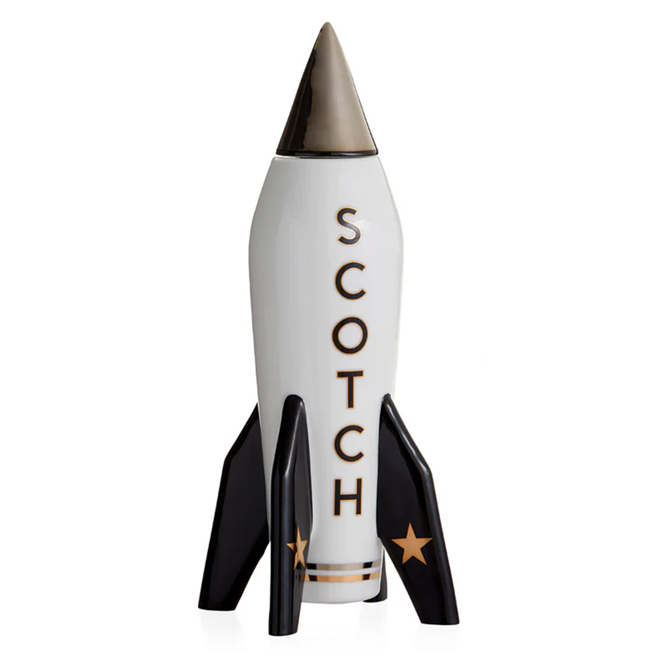 Schicken Sie Spirituosen in den Orbit mit unseren Space Age Porzellankaraffen Rocket. Sie sind mit echtem Goldglanz versehen und mit einer von der Sowjet-Ära inspirierten Typografie verziert - da fühlt sich selbst der billigste Schnaps wie aus einer anderen Welt an. Ausgestattet mit robusten Dichtungen für eine optimale Aufbewahrung von Spirituosen. Ein stilvoller, kultivierter Mann verdient eine komplett durchgestylte Bar: Sammeln Sie sie alle.